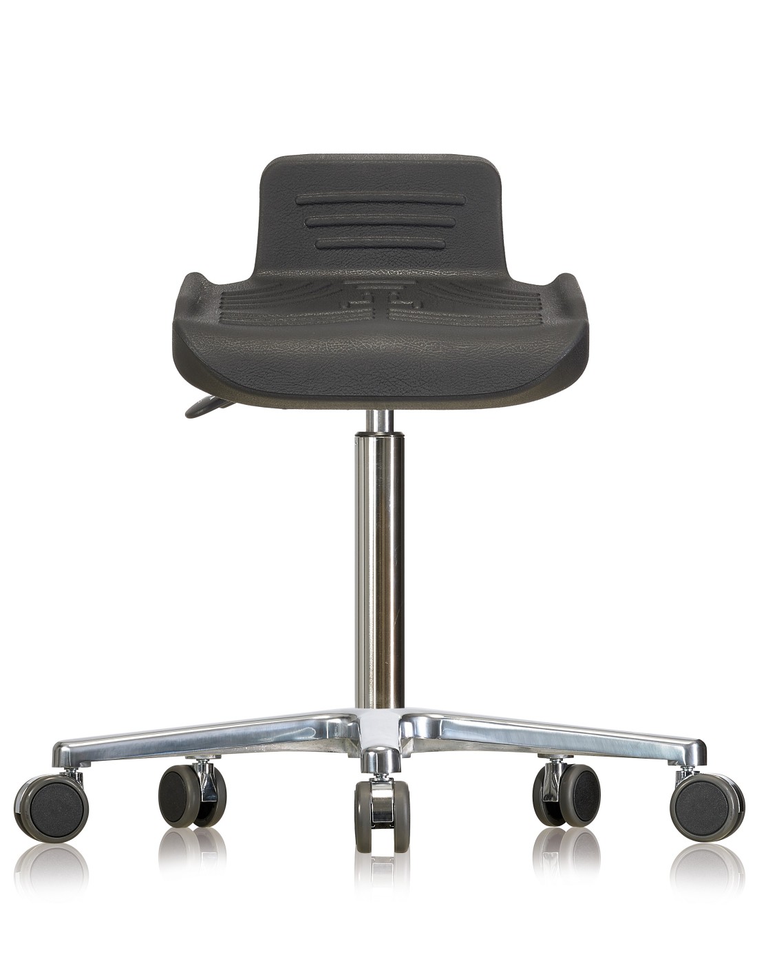 Drehhocker WS 4220 Classic Sitzflächenneigung Soft-PUR-Sitz Flachfuß und Rollen RAL 7045 telegrau