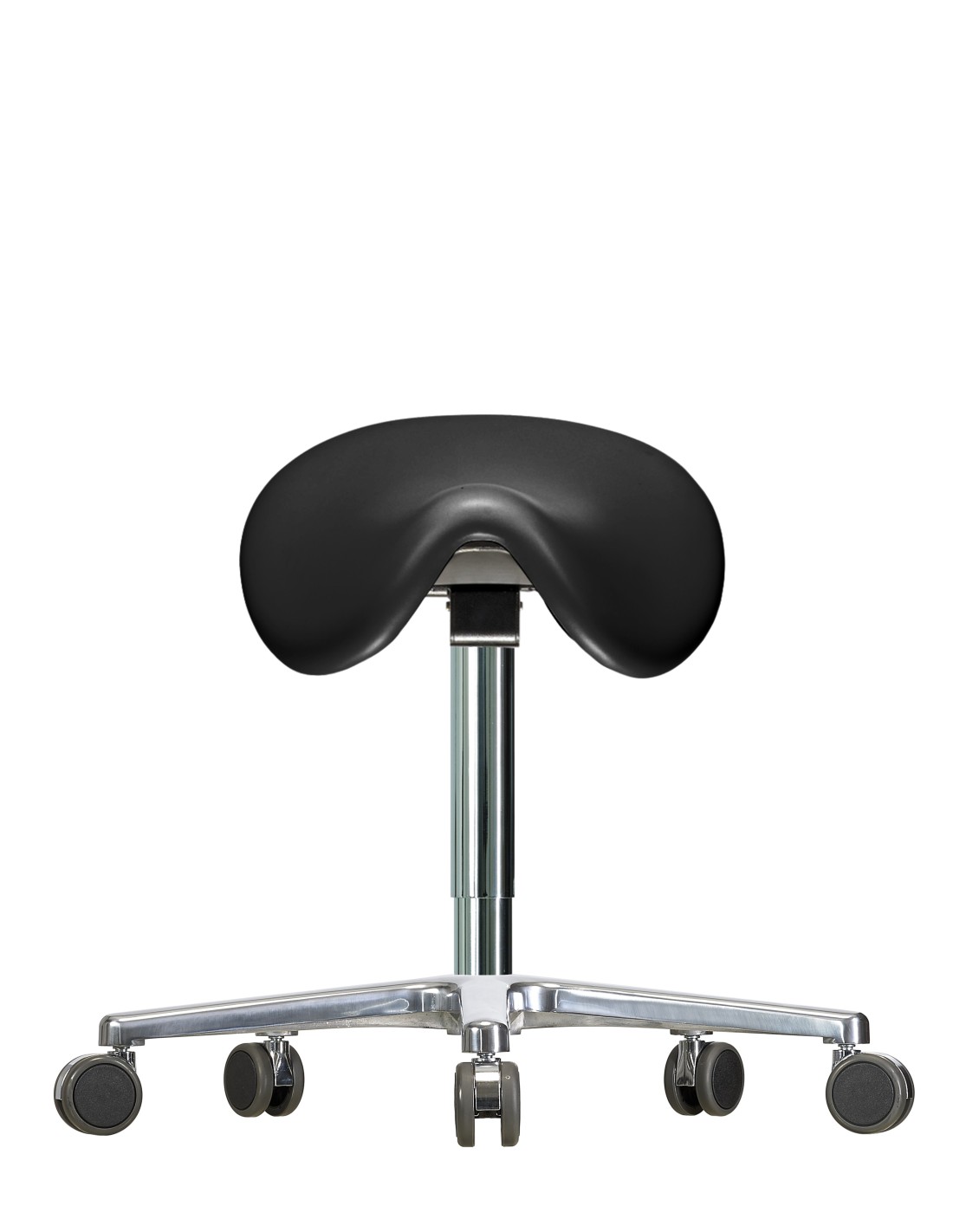 Taboret siodłowy WS3520 KL RL (pręt) z oparciem, skaj, podstawa na kółkach, 510-660 mm, czarny